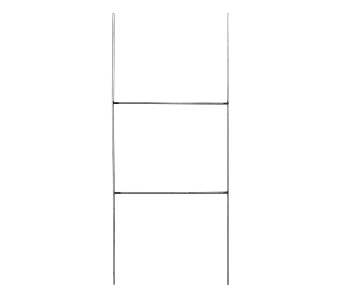 H-Stands are metal sign supports designed to securely hold coroplast signs in outdoor environments. One end of the H-stand inserts into the vertical flutes of a coroplast sign, while the other anchors into the ground, keeping the sign upright and stable.